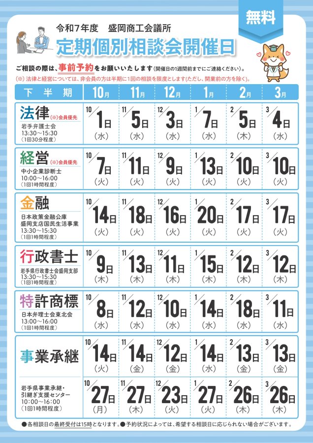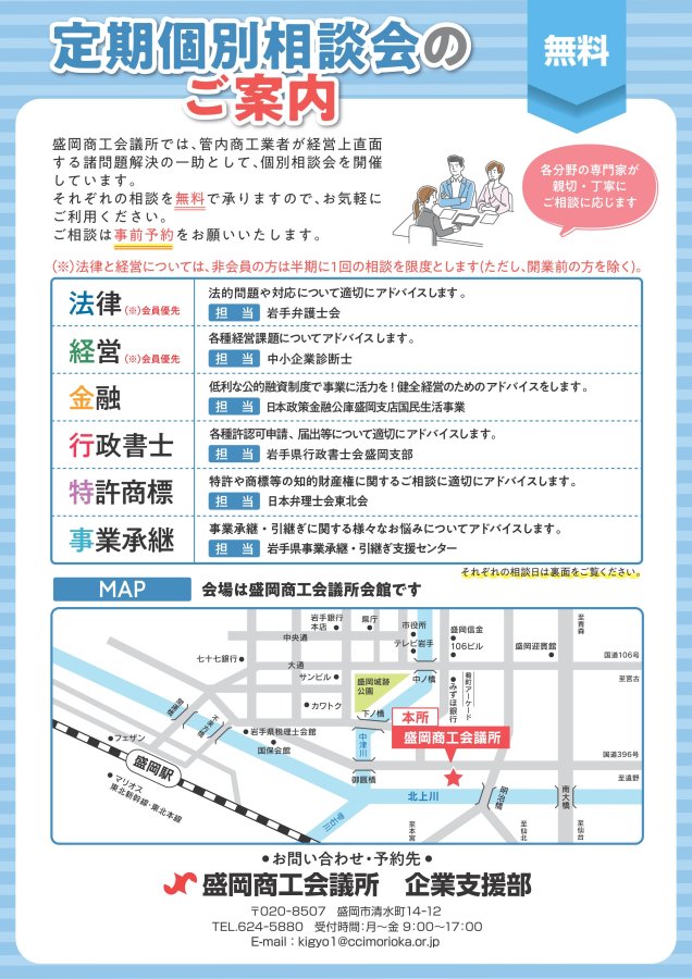 なお、この日以外でも経営に関するご相談は、随時承っております。